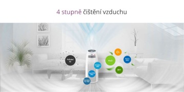 4 stupně čištění s účinností 99,97 % (předfiltr, True HEPA filtr, uhlíkový CD filtr, PlasmaWave®)