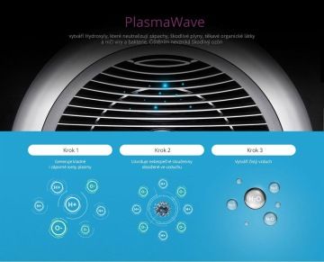 Pokročilý filtrační systém odstraňuje ze vzduchu prach, pyl, zvířecí alergeny, cigaretový kouř, bakterie a viry, spory plísní, organické chemické látky a pachy z domácnosti. PlasmaWave® vytváří kladné a záporné ionty, díky nimž se nečistoty ve vzduchu rozkládají na molekulární úrovni a navíc dochází k jeho svěžímu nabití, jako je tomu v přírodě.